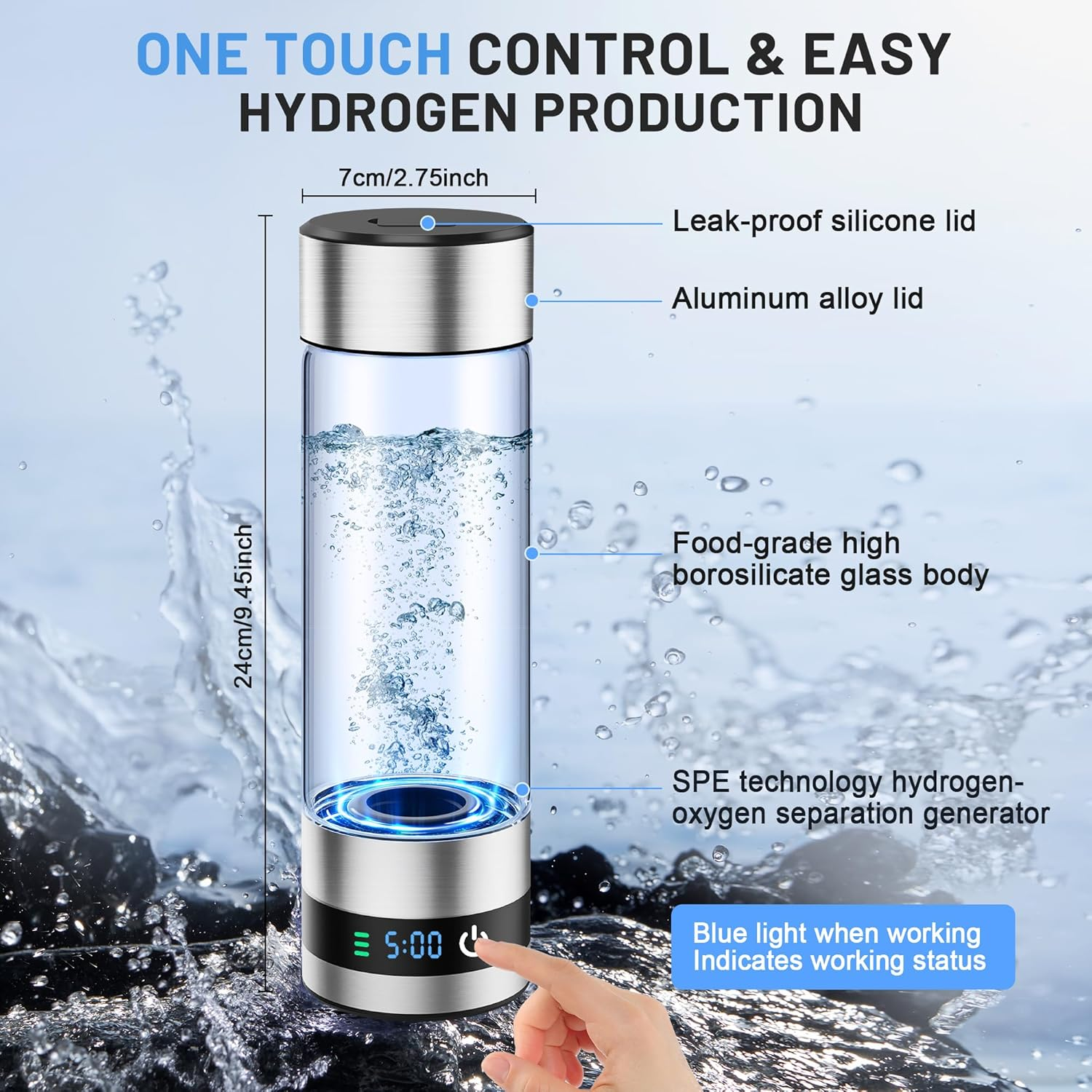 Produknaam: H2 ryk waterstofbottel (H225-Swart)