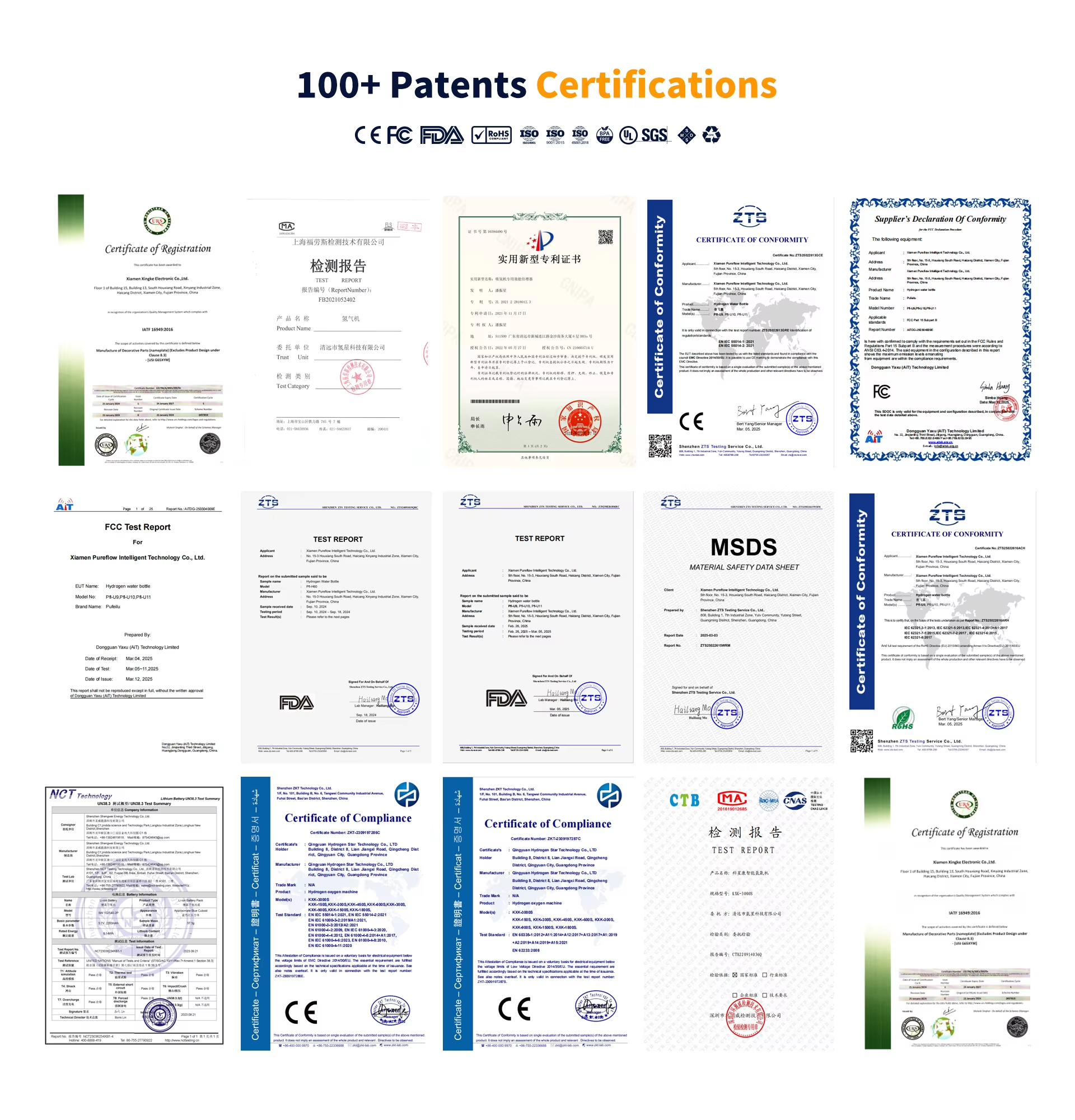R: I nostri prodotti a base di idrogeno hanno superato certificazioni come ISO 9001, CE, RoHS, FDA, FCC, MSDS, UL ecc., e sono conformi agli standard di sicurezza per il trasporto UN38.3, garantendo conformità e sicurezza globale nell'utilizzo.