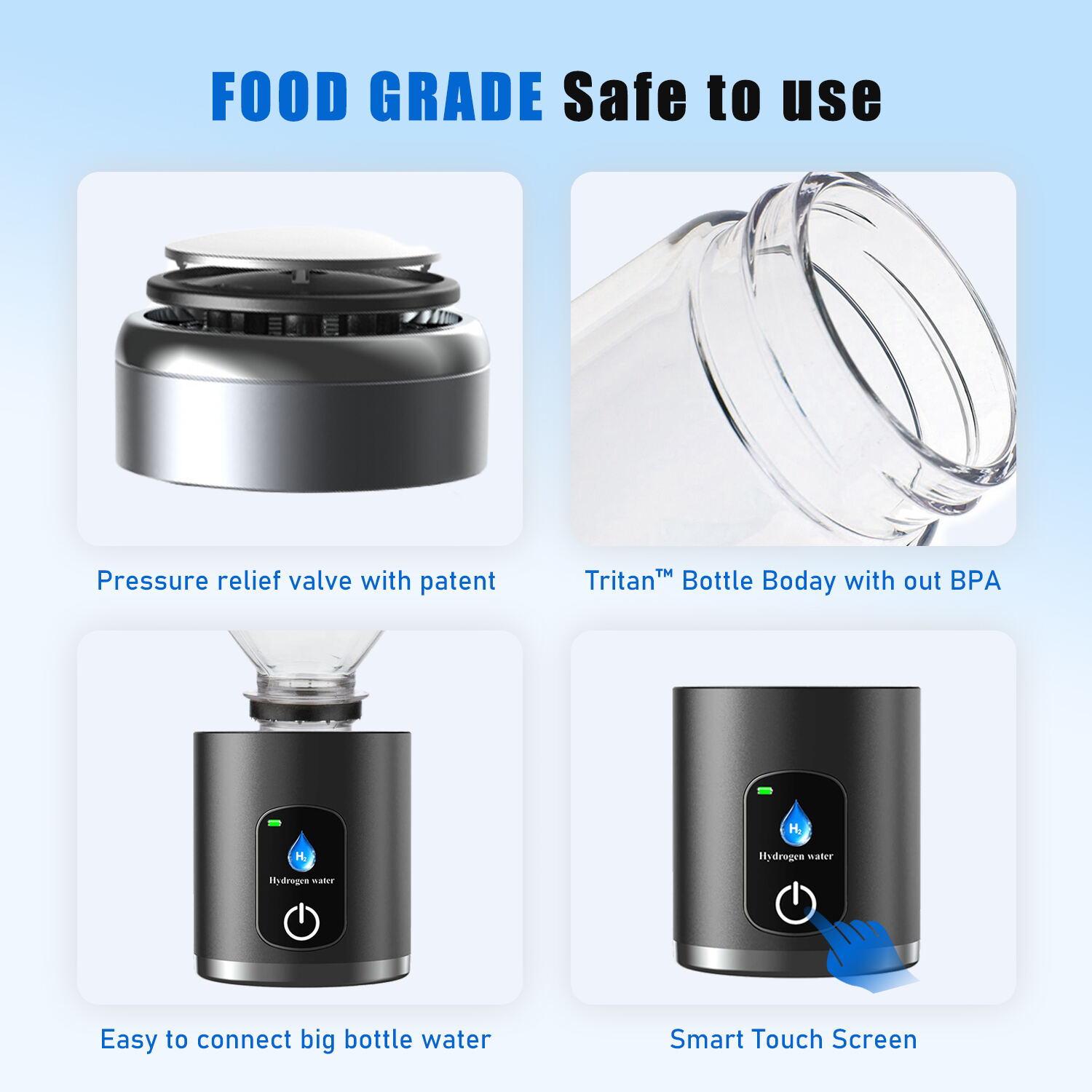 Prestasi yang Berpanjangan : Bateri bateri 2500mAh sokongan 20-30 kitaran setiap casan (setiap kitaran berlangsung 5-10 minit). Dengan satu pengecasan pantas dalam 3.5 jam , ia memberikan penghasilan hidrogen yang tahan lama sehingga 2-3 hari penggunaan. Ciri pembasuhan balik automatik membantu mengelakkan penyumbatan, memperpanjang jangka hayat botol.