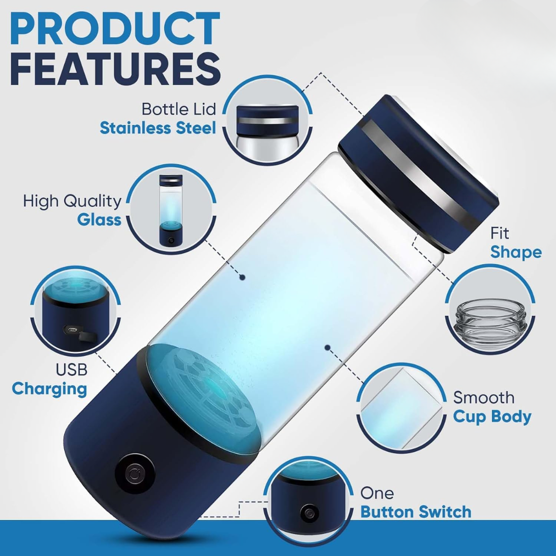 May isang isang-pindutan na kontrol , ginagawa ng bote na ito ang tubig na mayaman sa hydrogen sa loob lamang ng 3 minuto . Ang 7 00mAh na rechargeable na baterya sumusuporta sa 15 + gamit bawat pag-charge , at USB charging nagbibigay ng madaling pagre-recharge para sa huling k convenience.